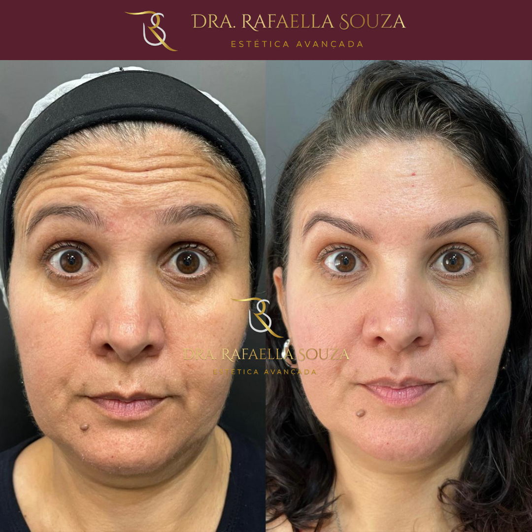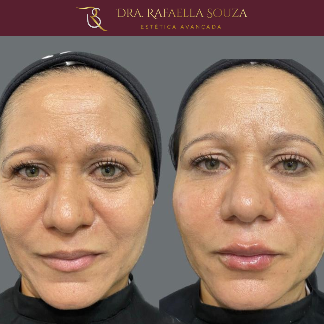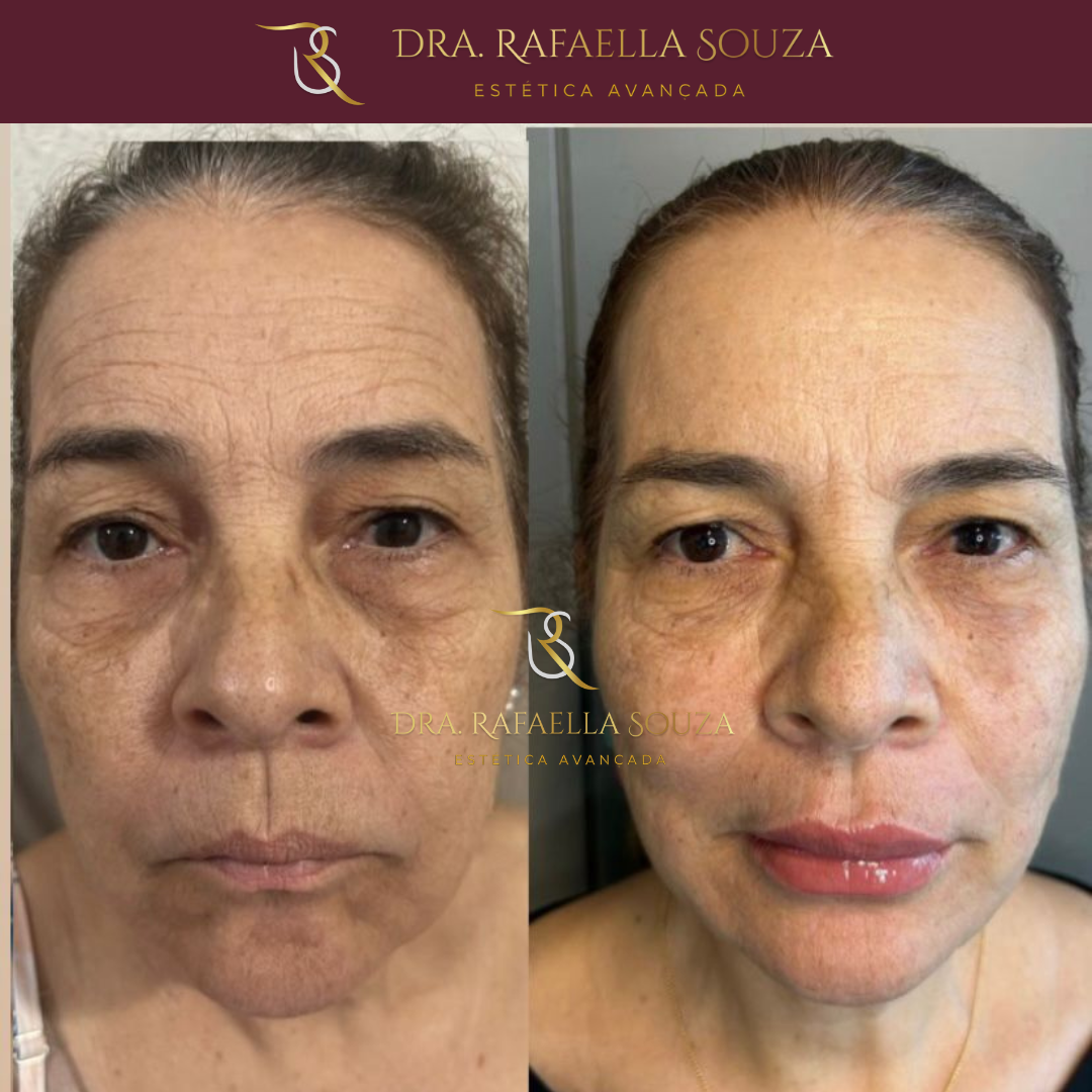 “Fiz tratamento para olheiras e bioestimulador de colágeno. A diferença é visível! Minha pele está mais firme, iluminada e com aspecto saudável. Dá pra ver que a Dra. Rafaella ama o que faz.”