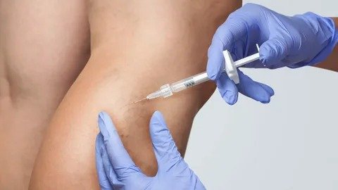 A escleroterapia (aplicação para varizes) é indicada para o tratamento de vasinhos e pequenas varizes nas pernas.